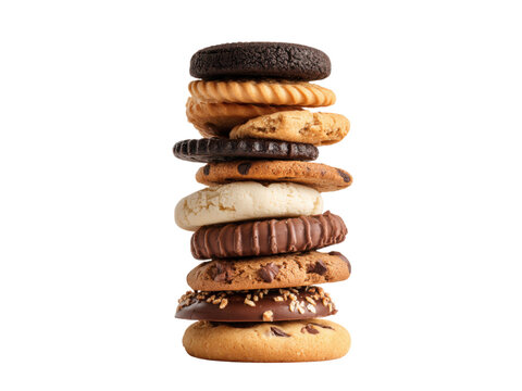 Stacked assorted cookies with chocolate chips and sprinkles baked sweet
