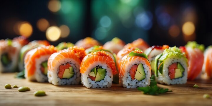 Assorted sushi presentation in elegant light