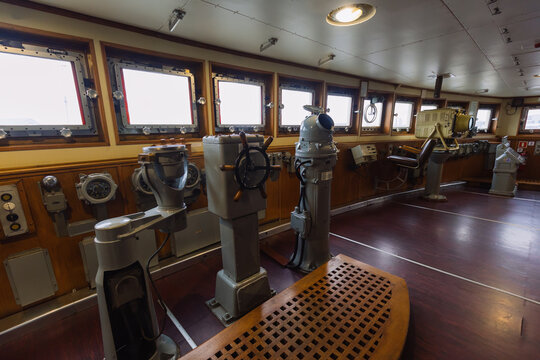 Navigational bridge and control device on old icebreaker ship