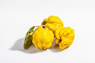 Ripe whole quince isolated on white background