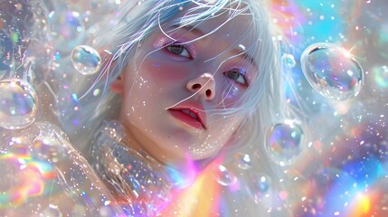 Shining Radiant Young Woman With Light Refracting, Bright Abstract Fashion.  (Generative AI).