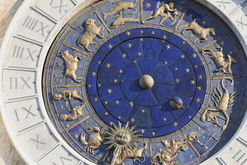 Beautiful celestial zodiac signs and astrological symbols on patterned ceramic tiles creating an artistic astrological display