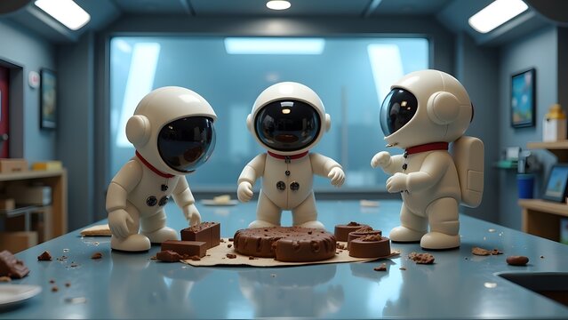 Astronauts testing lunar habitat panels inside geodesic dome at crater rim under black sky