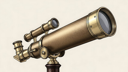 Vintage brass telescope illustration on a stand, symbolizing astronomical discovery and scientific exploration.