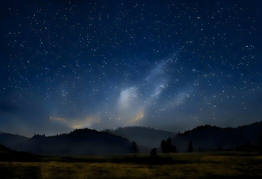 A beautiful night sky with a mountain range in the background
