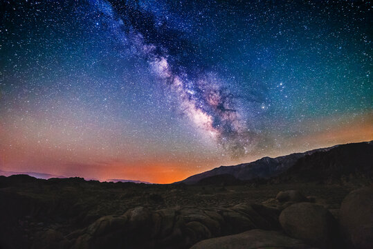 Scenic view of milky way over rocky landscape at night
