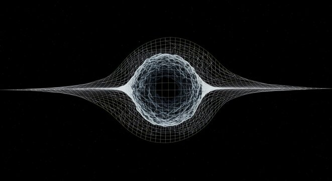 Dotted waveform running across cosmic starfield with data grid and glowing stars