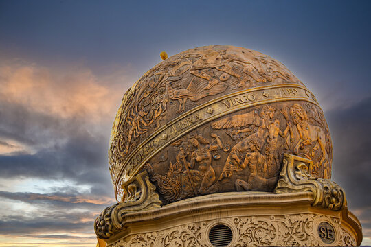 CHERNIVTSI, UKRAINE - JUNE 16, 2017: Zodiac signs sphere Chernivtsi, Ukraine