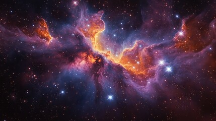 Cosmic Nebula Vibrant Orange and Purple Interstellar Clouds Celestial Starscape