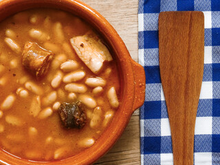 Typical dish of traditional asturian "fabada asturiana" (bean stew)