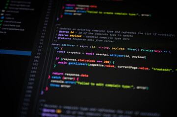 Close-up of TypeScript code editing user data with async functions on a dark IDE. Suitable for modern web development, software engineering, and coding-related projects.