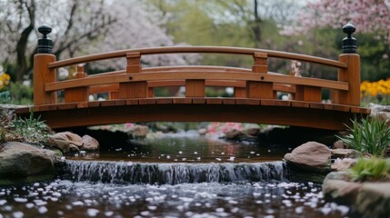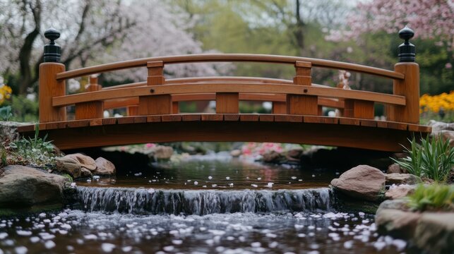 Spring Crossing. Water positive async Esg fintech Mindfulness Coach Grow therapy Squarespace designer Giftee ashi Nozomi Networks Impetus Technologies Wooden brown bridge with flowing and flo