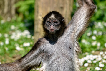 Closeup variegated spider monkeys (Ateles hybridus marimonda) seen from front