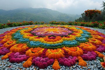 Vibrant Onam Pookalam Flower Rangoli Designs Traditional Indian Festival Celebration Artistry