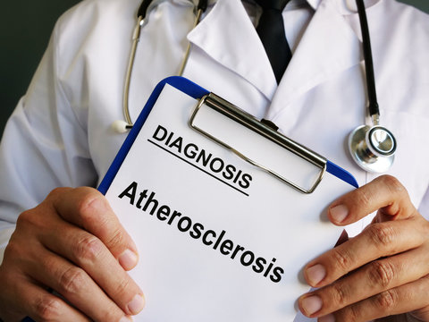 Doctor holds diagnosis Atherosclerosis on medical form.