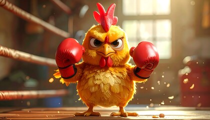 Determined Chicken Boxer Ready for a Fight in the Ring.