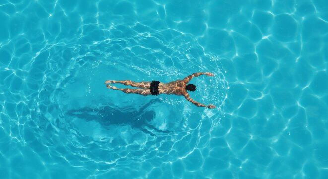 Athletic Swimmer Diving Into Clear Pool From Above Images