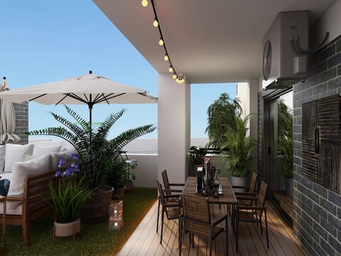 TERRAZA DE ATICO CON VISTAS . ZONA CHILL OUT Y COMEDOR CON BARRA