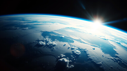 Sun Illuminates Earth from Space with Stunning View of Blue Planet and Atmospheric Layers : Generative AI