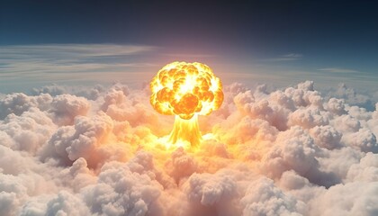 nuclear explosion mushroom cloud effect over city skyline for apocalyptic aftermath of nuclear attack or the use of mass destruction weapons
