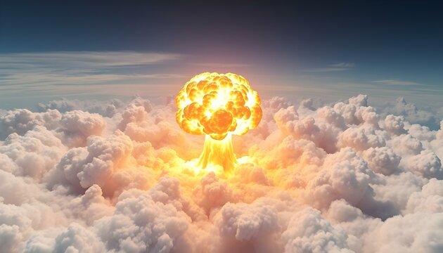 Massive Hot and Orange Mushroom Cloud from a Nuclear Explosion