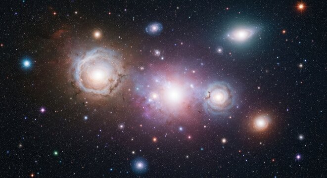 Cosmic composition of galaxies and stars, spread across the dark expanse