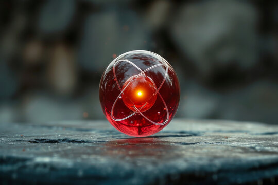 Glowing Atomic Model Inside a Transparent Sphere