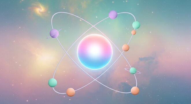 Abstract representation of atomic structure with particles and nucleus illustration transparent background