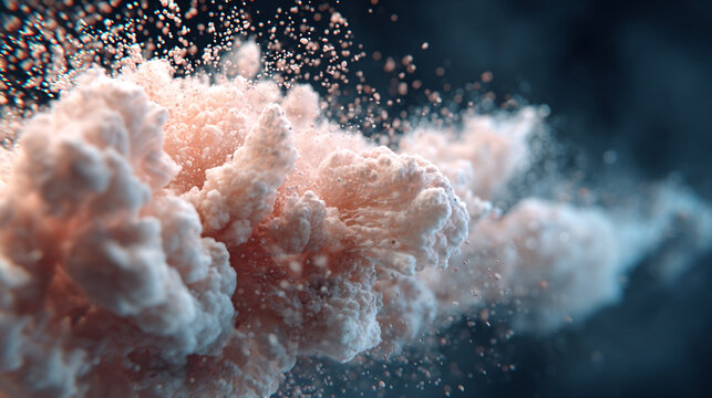 Molecular energy explosion frozen in midair with vibrant glowing particles radiating dynamic force, capturing futuristic scientific power, abstract energy, and dramatic digital visualization