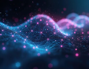 Abstract digital illustration of interconnected spheres with vibrant neon light effects representing molecular or atomic structures in a futuristic style