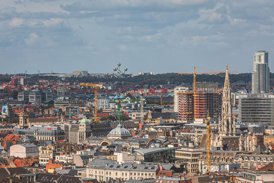 View from above city of Brussels with Atomium in the background