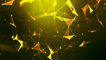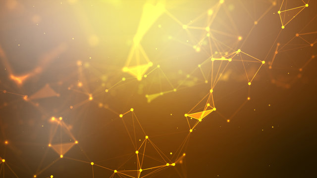 Abstract background Dot and connect line for cyber technology futuristic and network connection concept with dark and grain processed wide screen ratio.