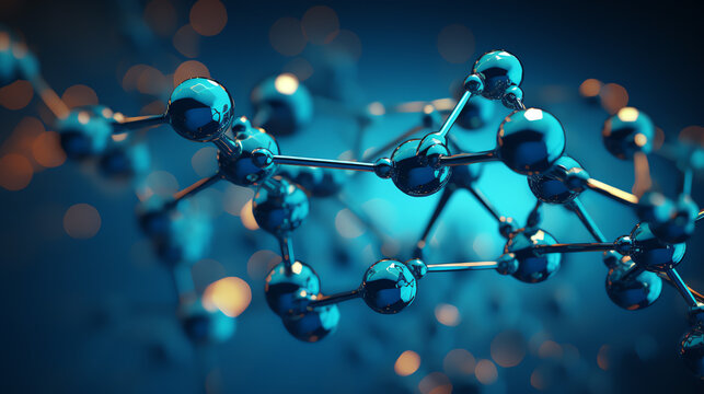 Molecular structure against abstract blue background
