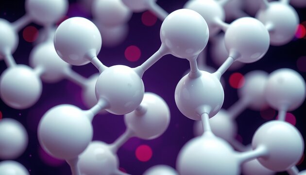 a molecular model, representing scientific concepts and structures, with a focus on atoms, bonds, and molecular interactions in a science background.