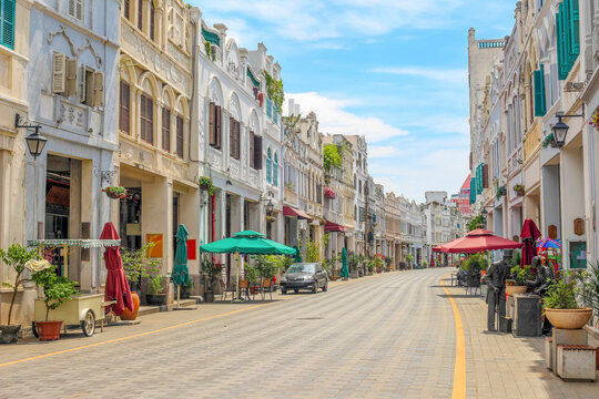 Haikou Qilou Old Street (Zhongshan Road) , a Historical and Cultural Tourist Atrraction in Haikou City, Hainan Province, China.
