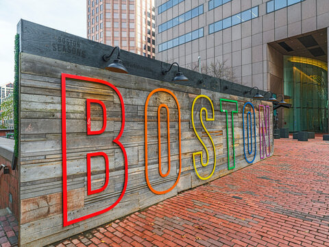Iconic Boston Sign in Downtown Boston..Boston, Massachusetts, USA