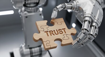 Robot Hand Holding Trust Puzzle Piece Concept