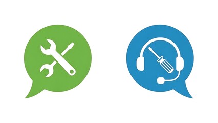 Two colorful chat bubbles representing technical support and repair services offer assistance for problem solving