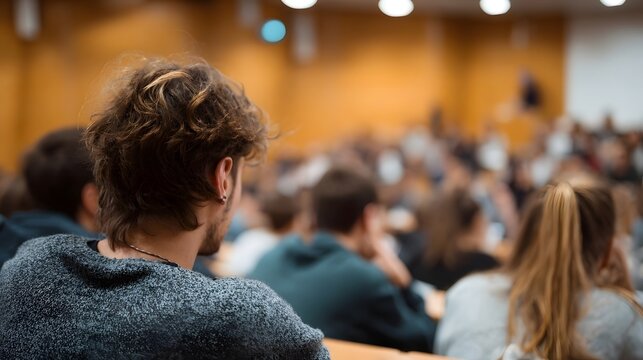 A group of focused medical students attending a lecture on contemporary medicine and healthcare innovations at a university auditorium
