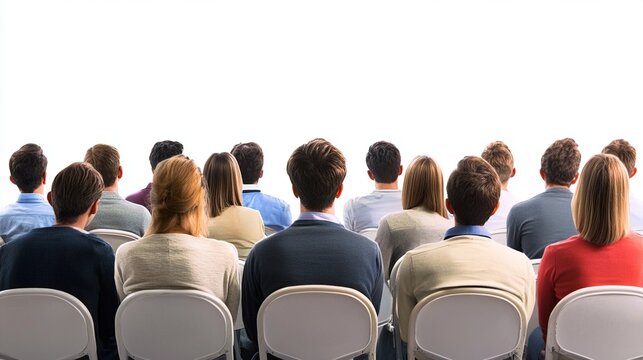 Rearview of university students listen to lecturer explaining lesson in the classroom
