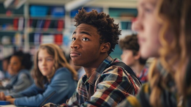 Diverse teenagers engaging in classroom learning