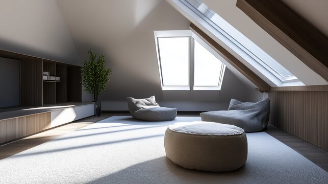 Modern attic with stylish and functional living space that has been designed to make the most of the unique characteristics of an attic
