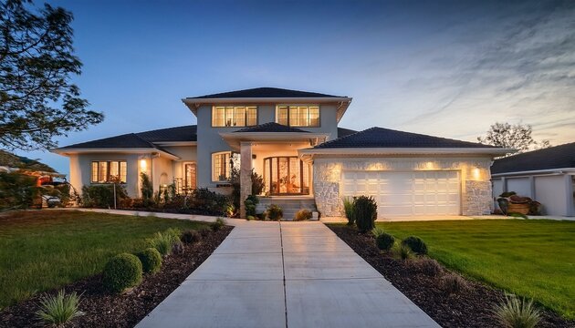 a beautiful home exterior, showcasing its architectural elegance and inviting ambiance, ideal for real estate marketing to attract potential buyers.