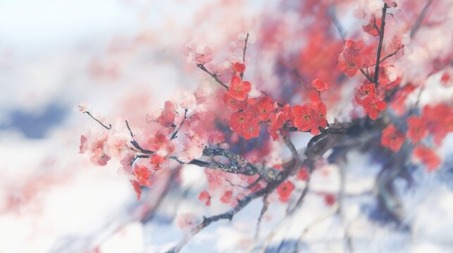 Gold foil tree emblem on crimson cardstock with metallic shine and soft blush speckles