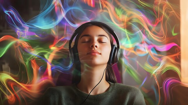 Vibrant audio waveform with luminous neon clouds