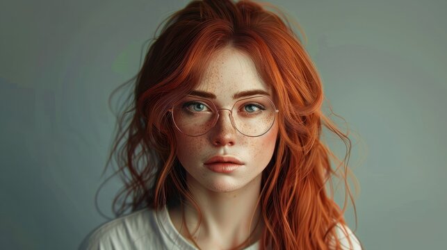 Beautiful young woman with red hair and glasses