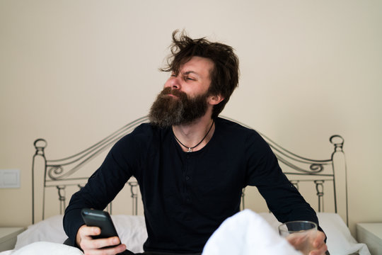 A brutal bald man posing on the beach at sunset parody glamorous chick