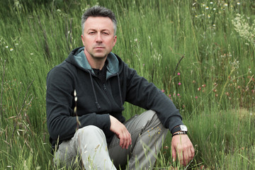 Handsome man. Outdoor male portrait. Image toned.