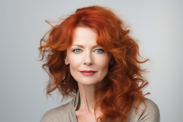 young attractive redhead woman fitness trained lifestyle portrait on plain studio background