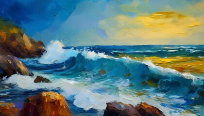 oil paintings sea landscape stormy sea waves waves on the beach fine art atwork waves crashing on the rocks